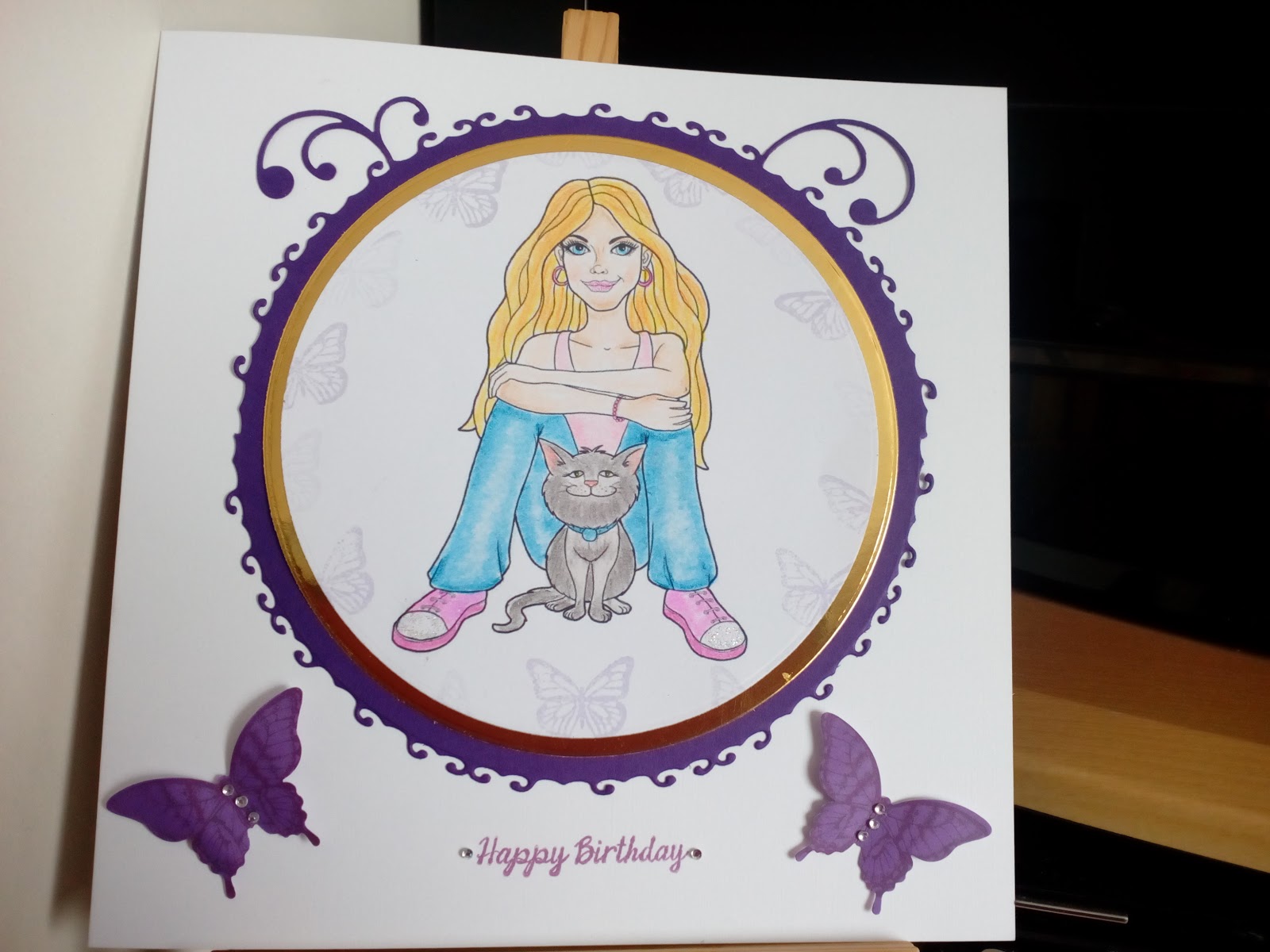 Pretty Girl Sitting With Kitty - SLS Lines)